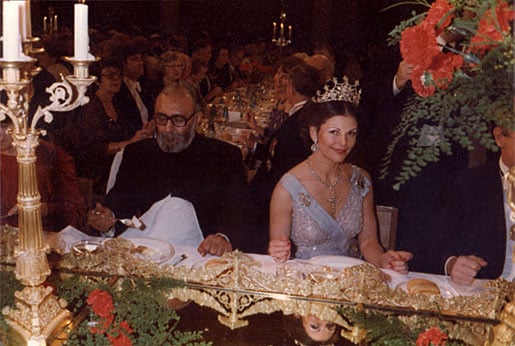 1 (of 3) Abdus Salam and HM Queen Silvia of Sweden at the Nobel Banquet in the Stockholm City Hall, Sweden, on 10 December 1979.