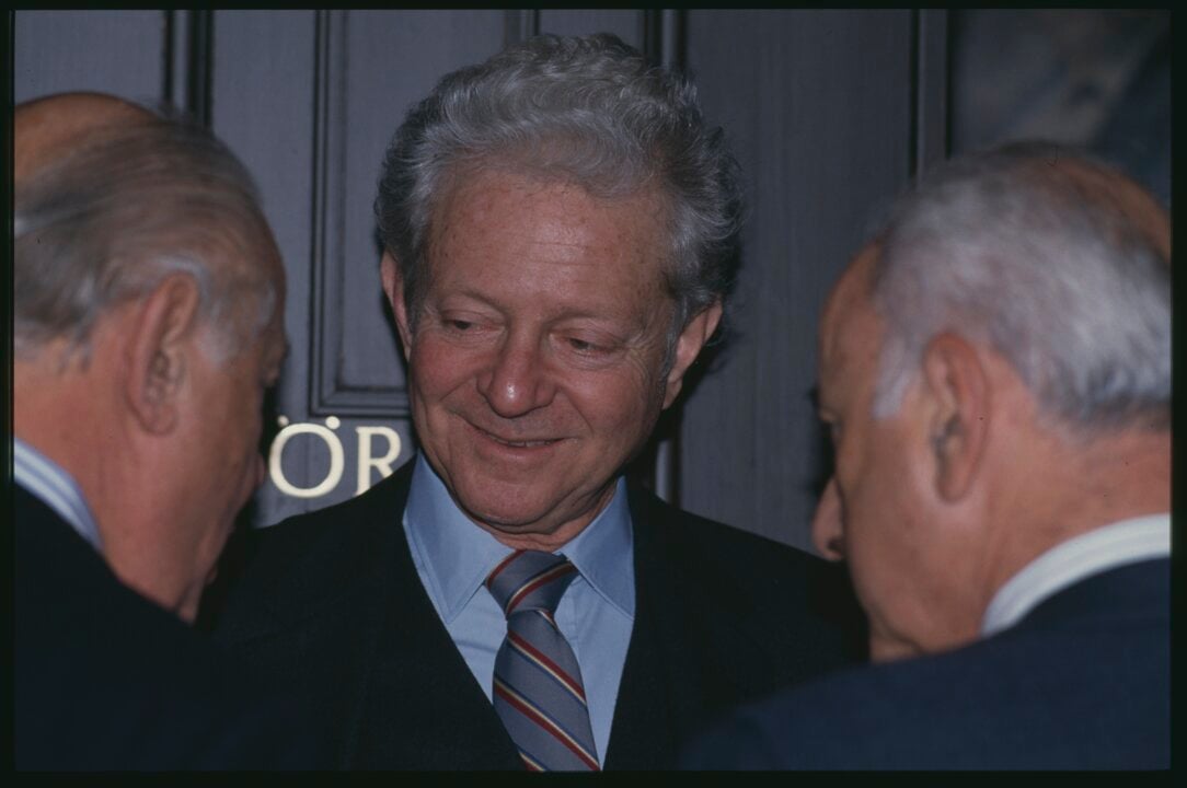 Leon M. Lederman photographed visiting the Nobel Foundation during Nobel Week in Stockholm, Sweden, December 1988.