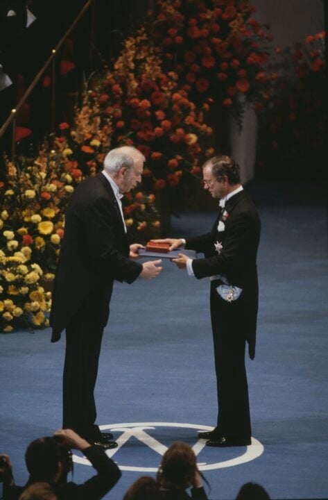 1 (of 2) Jerome I. Friedman receiving his Nobel Prize from H.M. King Carl XVI Gustaf of Sweden at the Stockholm Concert Hall, on 10 December 1990.