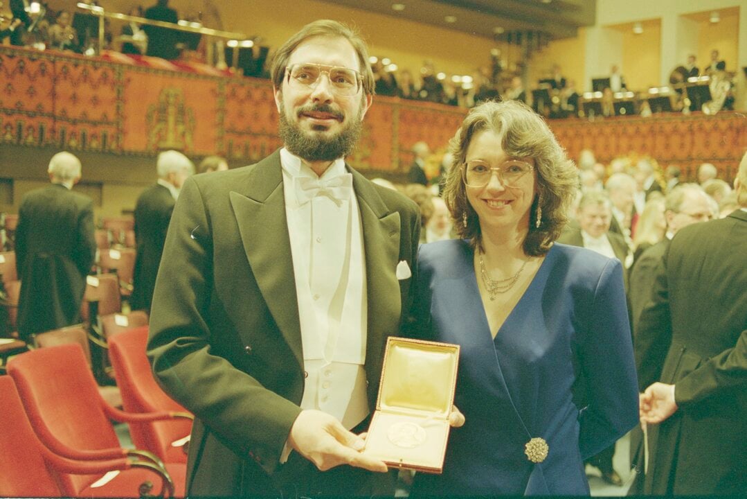 2 (of 7) All Nobel Laureates assembled at the Nobel Prize award ceremony in the Stockholm Concert Hall on 10 December 1993. From left: Physics Laureates Russell A. Hulse and Joseph H. Taylor Jr, Chemistry Laureates Kary B. Mullis and Michael Smith, Medicine Laureates Richard J. Roberts and Phillip A. Sharp, Literature Laureate Toni Morrison and Laureates in Economic Sciences Robert W. Fogel and Douglass C. North.