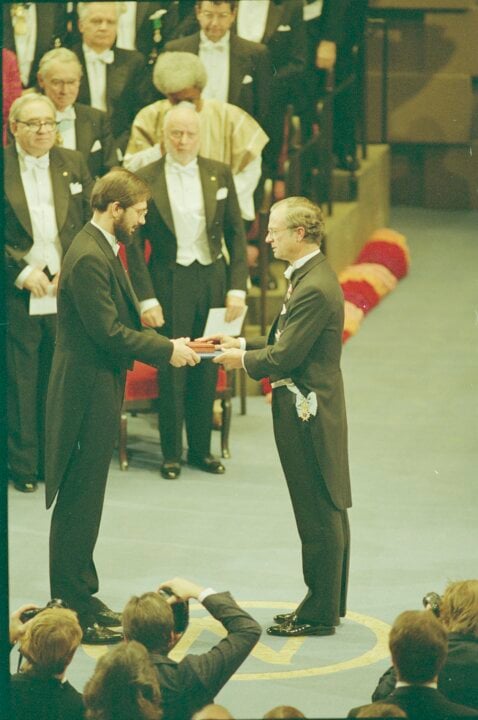 1 (of 7) Russell A. Hulse receiving his Nobel Prize from H.M. King Carl XVI Gustaf of Sweden at the Stockholm Concert Hall on 10 December 1993.