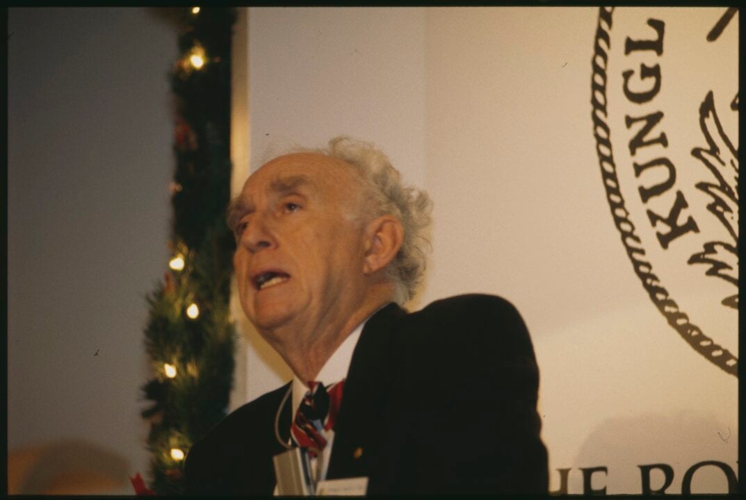 8 (of 11) Martin L. Perl delivering his speech of thanks at the Nobel Prize banquet in the Stockholm City Hall, 10 December 1995.