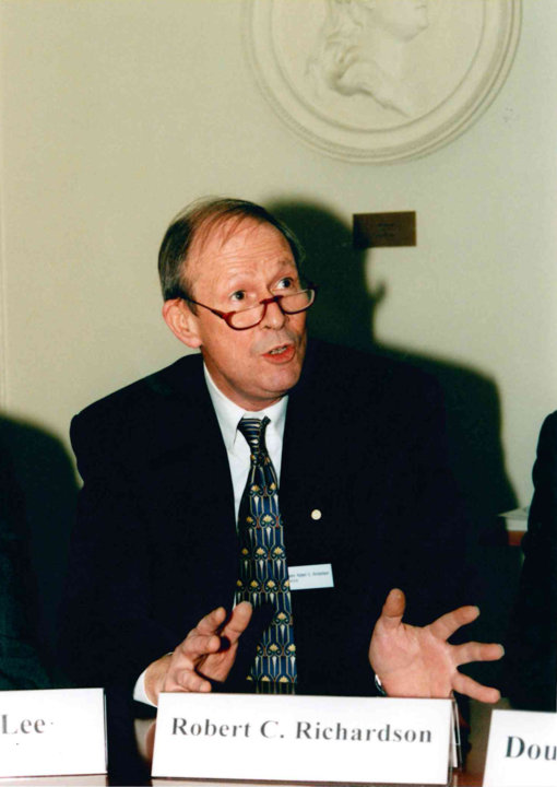 3 (of 9) Robert C. Richardson at a press cenference, 1996.