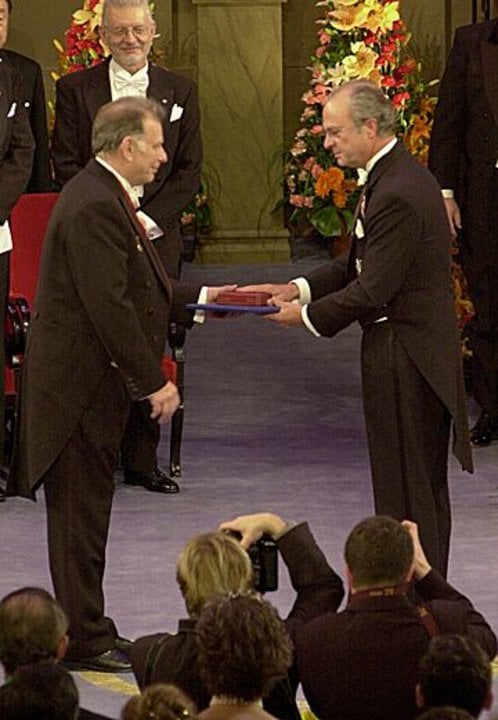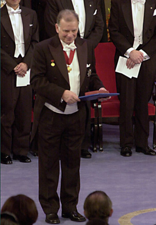 Zhores I. Alferov receiving his Nobel Prize from His Majesty the King Carl XVI Gustaf of Sweden at the Stockholm Concert Hall, 10 December 2000.