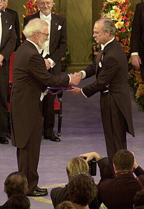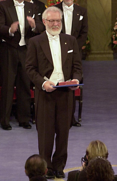 Herbert Kroemer receiving his Nobel Prize from His Majesty the King Carl XVI Gustaf of Sweden at the Stockholm Concert Hall, 10 December 2000.