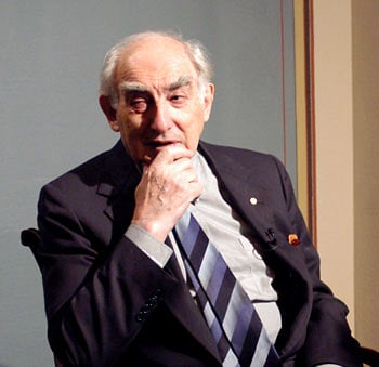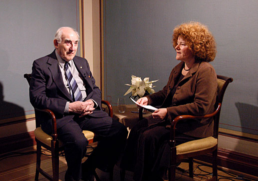 Vitaly L. Ginzburg being interviewed by science writer Joanna Rose, 9 December 2003.