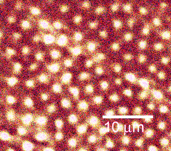 | Fig. 2. This image is of an Abrikosov lattice of vortices in the electron fluid in a type-II superconductor. The magnetic field passes through these vortices. |