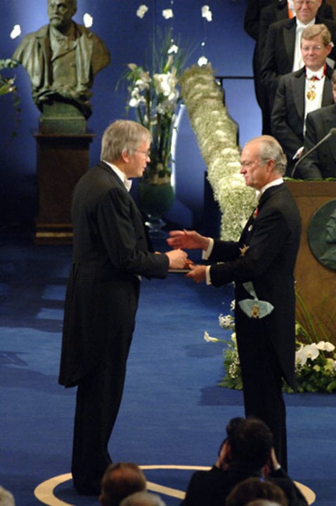 Theodor W. Hänsch receiving his Nobel Prize from His