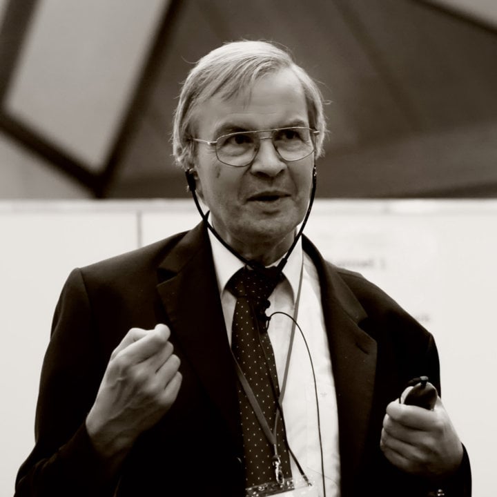 7 (of 7) Theodor W. Hänsch photographed in the middle of a scientific discussion during the 58th Meeting of Nobel Laureates in Lindau, July 2008.