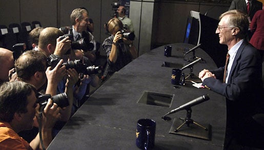16 (of 18) Nobel Laureate John C. Mather at a press conference held at the NASA Headquarters in Washington, DC, USA, after the announcement of the 2006 Nobel Prize in Physics.