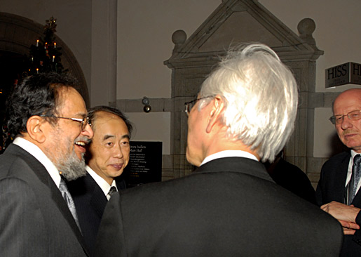 Makoto Kobayashi (second from left) during the Nobel Foundation reception at the Nordic Museum in Stockholm, 9 December 2008.