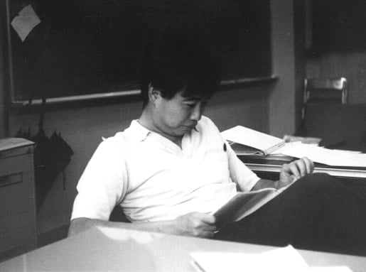 13 (of 14) Makoto Kobayashi at a study room at Kyoto University.