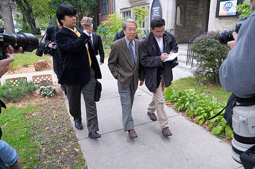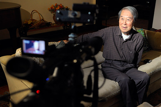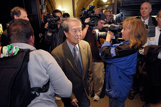 10 (of 15) Nobel Laureate Yoichiro Nambu being filmed by the press.