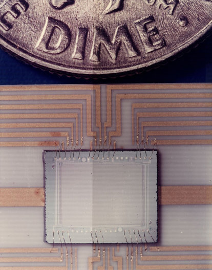 14 (of 14) The CCD image sensor is at the heart of a solid state video camera. A flat chip of oxidized silicon covered with a complicated array of metal electrodes is the image sensor at the heart of the solid state video camera built by Bell Lab engineers.