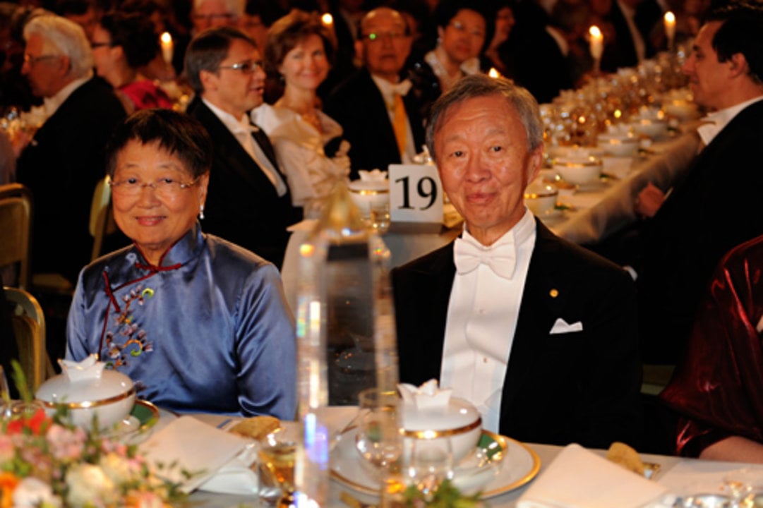 Charles K. Kao (right), with his wife Mrs May W. Kao left) at the Nobel Banquet in the Stockholm City Hall, 10 December 2009.