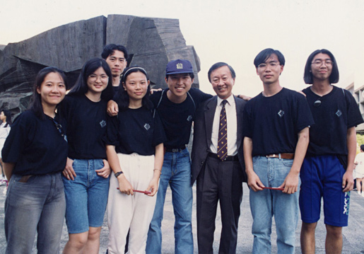 17 (of 19) Professor Charles Kao (third from right) poses shoulder-to-shoulder with students from the Chinese University in Hong Kong on the first day of the 1994-95 academic year.