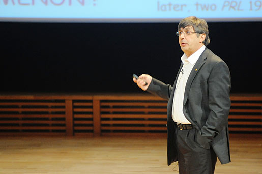 Andre Geim delivering his Nobel Lecture at Aula Magna, Stockholm University, on 8 December 2010.