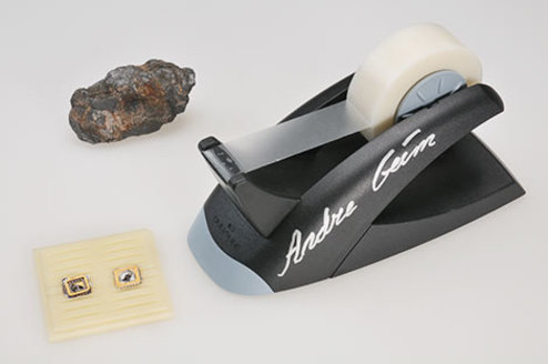 15 (of 20) Graphite, tape roll and graphene transistor. The items were donated to the Nobel Museum by Andre Geim and Konstantin Novoselov in 2010.