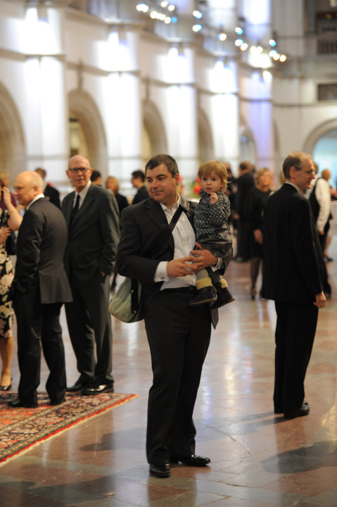 Konstantin Novoselov with one of his children during the Nobel Foundation reception at the Nordic Museum in Stockholm, 9 December 2010.