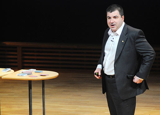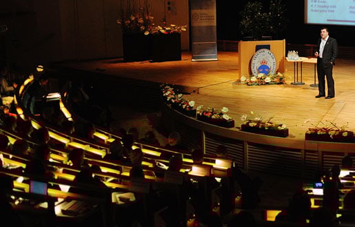 Konstantin Novoselov delivering his Nobel Lecture at Aula Magna, Stockholm University, on 8 December 2010.
