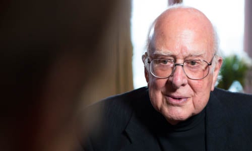 14 (of 23) Peter Higgs during the interview with Nobelprize.org on 6 December 2013.