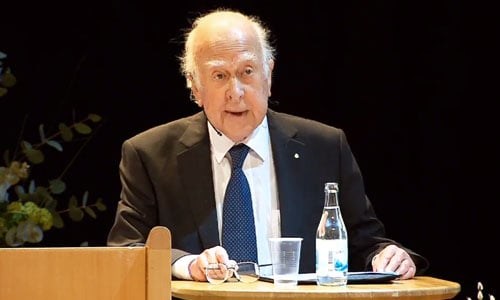 8 (of 23) Peter Higgs delivers his banquet speech after the dinner.