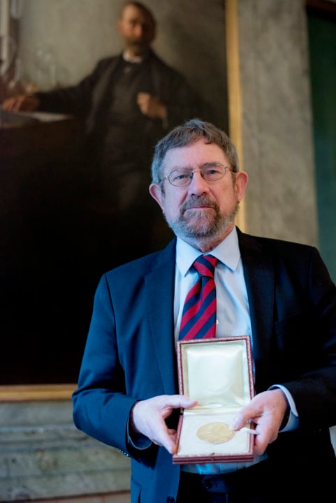 J. Michael Kosterlitz showing his Nobel Medal.