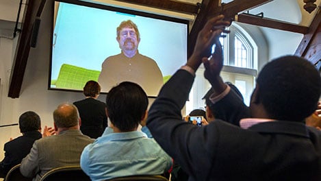 12 (of 13) Celebrations in the physics department at Brown University following the news of Michael Kosterlitz's Nobel Prize in Chemistry. Professor Kosterlitz attended via videolink as he is currently a visiting fellow at Aalto University in Finland.