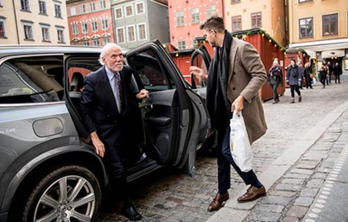 Barry C. Barish arrives at the Nobel Museum in Stockholm, Sweden, for the 2017 Nobel Laureates' Get together on 6 December 2017.