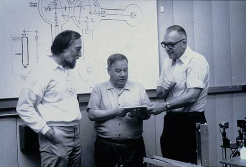 Figure 2. Me, Ron Drever and Robbie Vogt in 1978. [Credit: Caltech.]