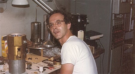 16 (of 16) Rainer Weiss in his lab in MIT's building 20 in the late 1970s, working on a cryogenically-cooled detector for Cosmic Microwave Background.