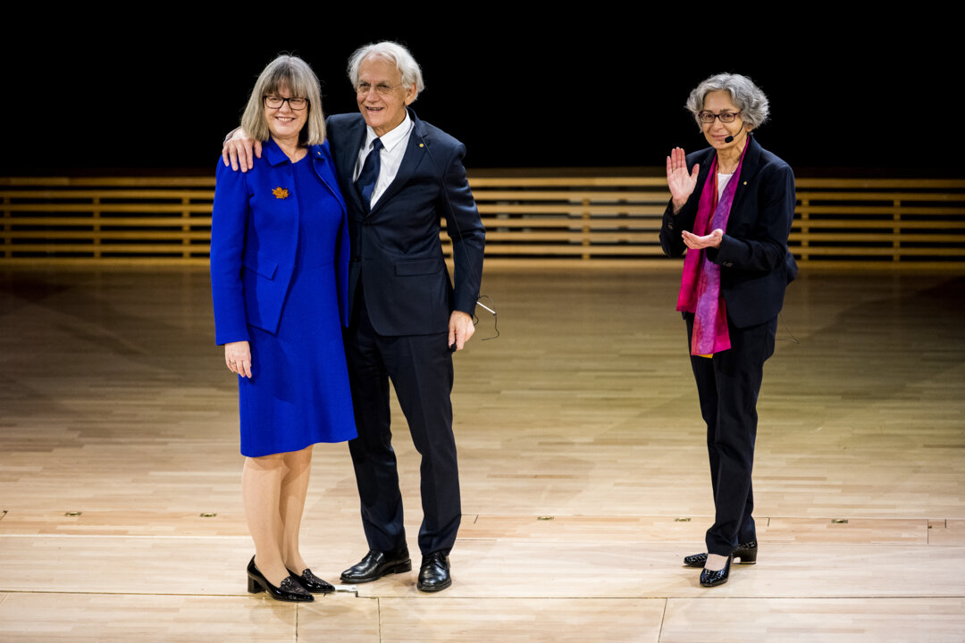 12 (of 17) Donna Strickland and Gérard Mourou after they delivered their Nobel Lectures on 8 December 2018. Introductions were held by Olga Botner (right), Chair of the Nobel Committee for Physics.