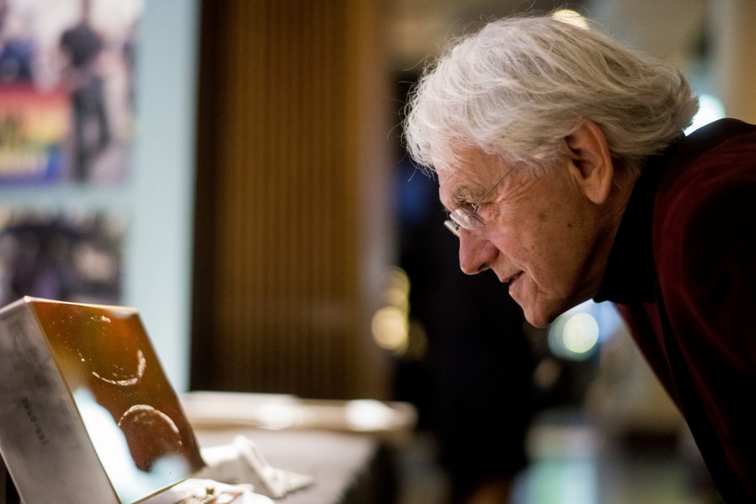 9 (of 17) Gérard Mourou having a look at the Nobel Foundation's guest book, signed by the laureates since 1952, during his visit to the Nobel Foundation on 13 December 2018.