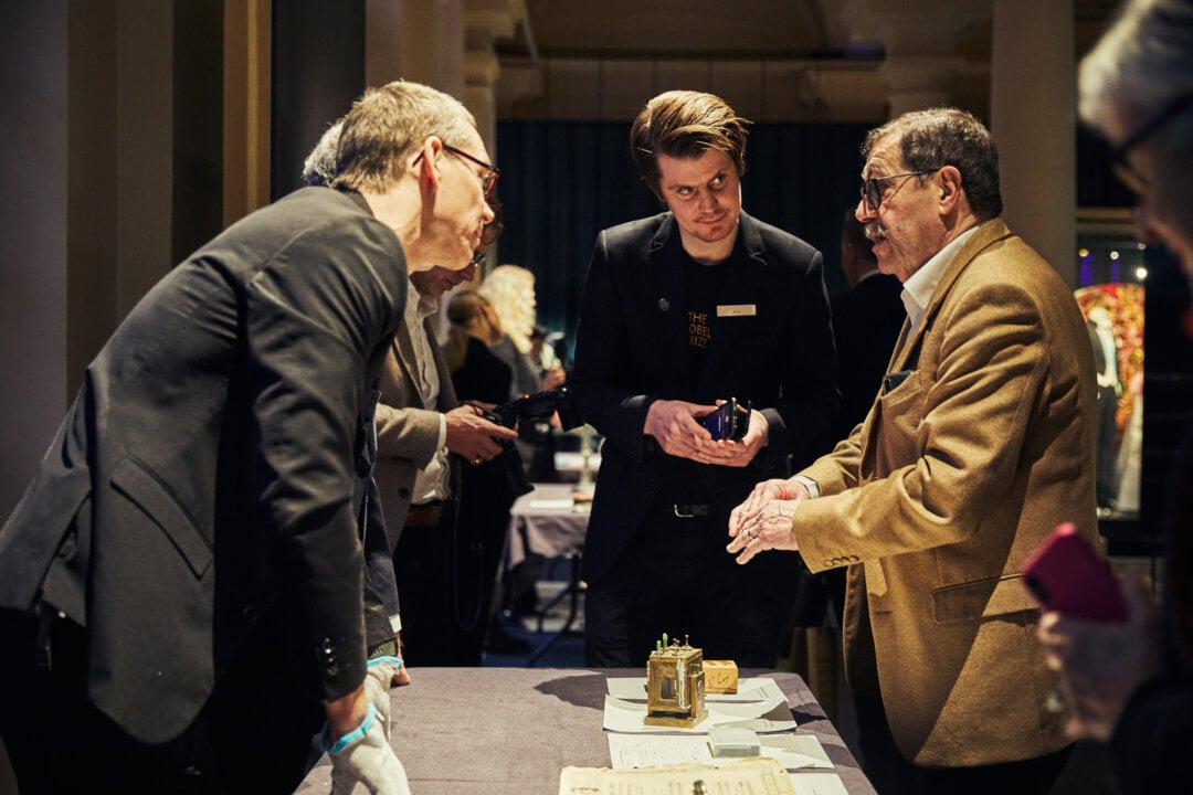 14 (of 18) Physics laureate Alain Aspect presenting his gift to the Nobel Museum's collection: an optical switch, during the 2022 Nobel Prize laureates' Get together on 6 December 2022.