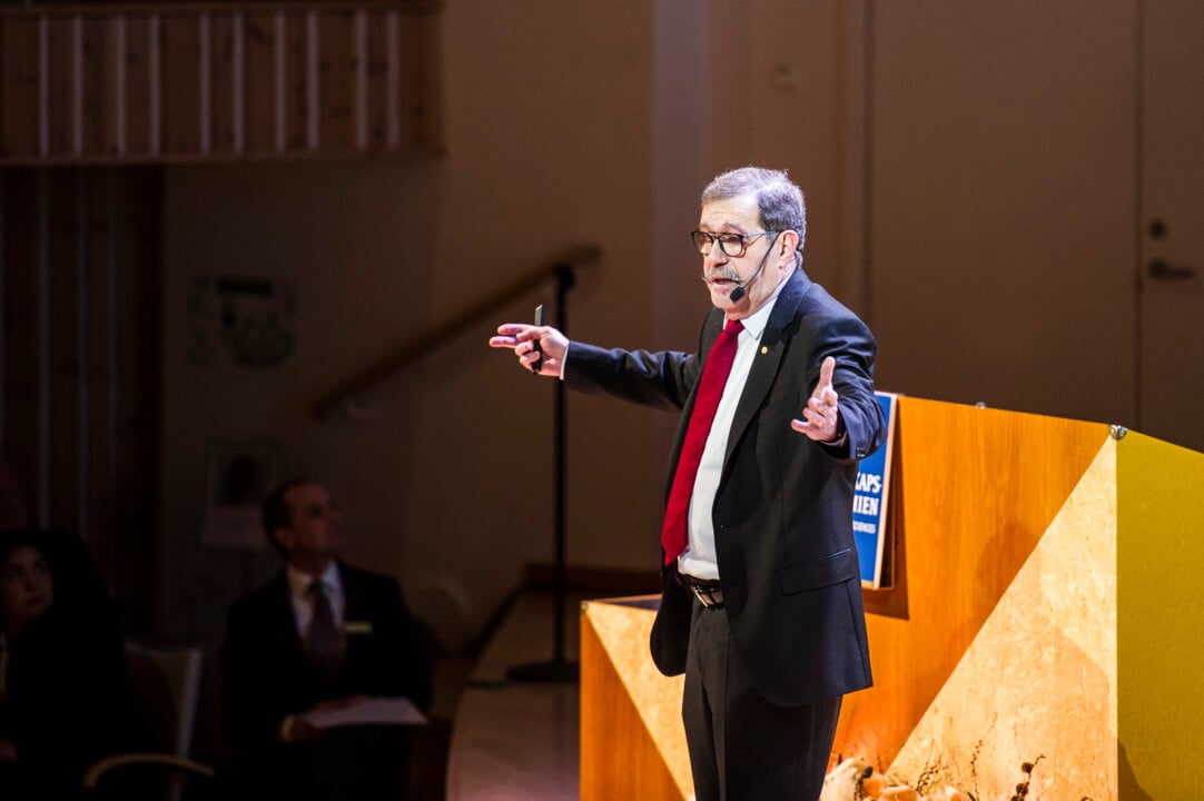8 (of 18) Alain Aspect delivering his speech of thanks at the Nobel Prize banquet.