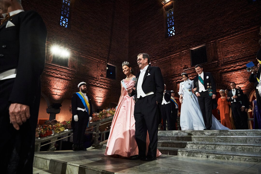 6 (of 18) Physics laureate Alain Aspect proceed with HRH The Crown Princess Victoria into the Blue Hall of the Stockholm City Hall for the Nobel Banquet, 10 December 2022.