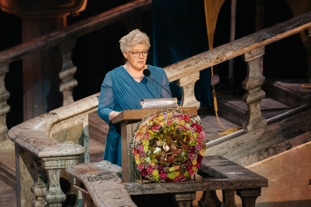 6 (of 13) Anne L’Huillier delivering her speech of thanks at the Nobel Prize banquet in the Stockholm City Hall, 10 December 2023.