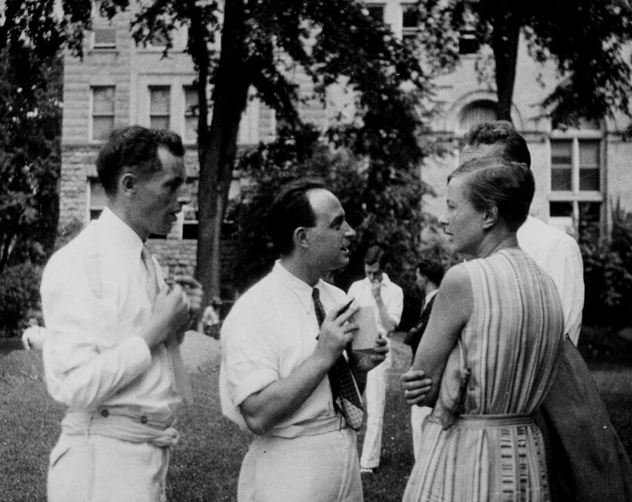 2 (of 2) From left: Robert Atkinson, Enrico Fermi, and Maria Goeppert Mayer in Ann Arbor, Michigan.
