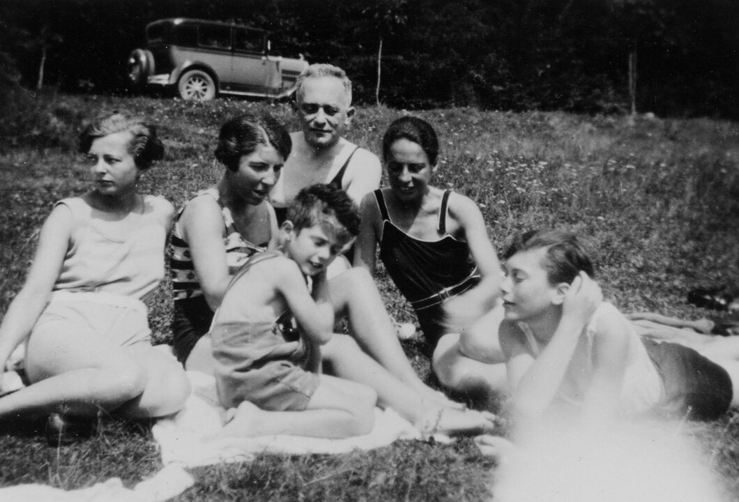 1 (of 2) Maria Goeppert Mayer, Hedi Born, Max Born, Maria Stein, Gustav Born (center front), Irene Born (reclining). Max Born was Maria Goeppert Mayer's doctoral supervisor at the University of Göttingen in Germany.