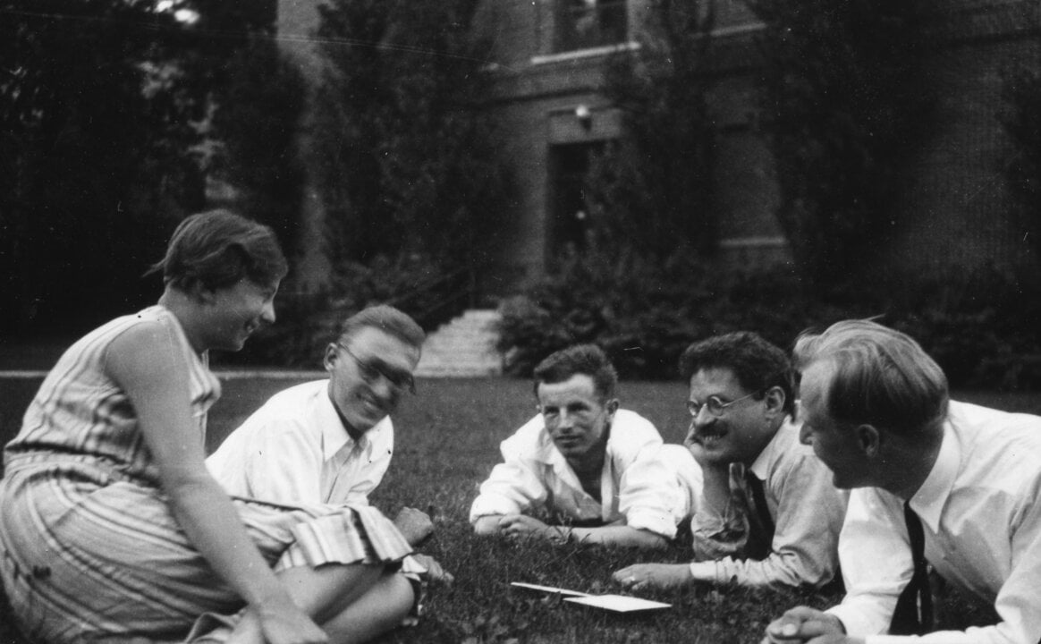 1 (of 2) From left: Maria Goeppert Mayer, Joseph Mayer, Robert Atkinson, Paul Ehrenfest and Lars Onsager at University of Michigan Summer School, 1930.